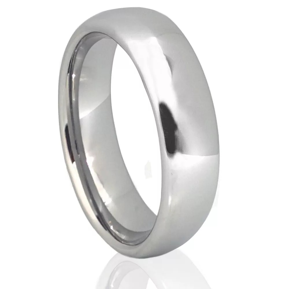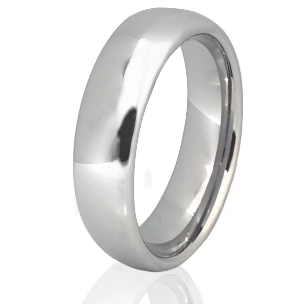 6mm Silver Tungsten Classic Domed Wedding Ring Mens Womens Polished Comfort Fit Band