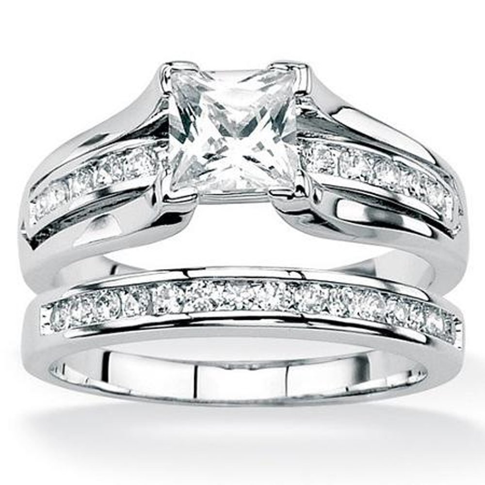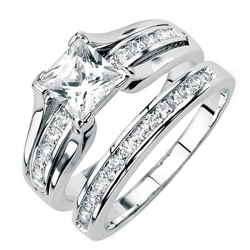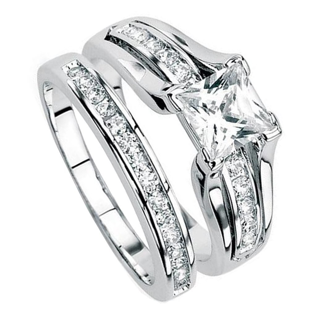 925 Sterling Silver Women’s Wedding Band Princess Bridal Engagement Ring Set