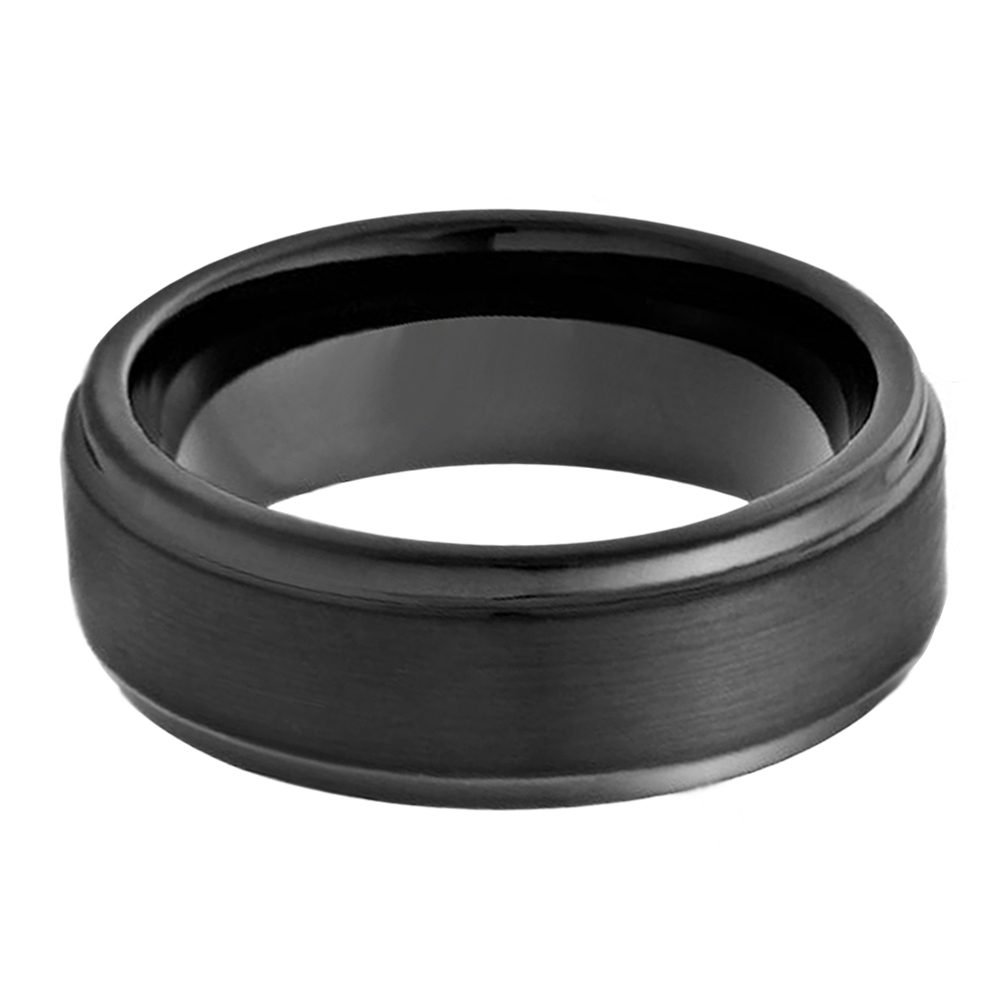 Simple, classic, and minimalistic. This black titanium wedding band has a brushed finish, giving it a subtle, yet attractive appearance. With step edges and a comfort fit interior, this mens 8mm black titanium band is as comfortable as it is stylish. Elegant and understated, this ring is a great addition to any jewelry collection.