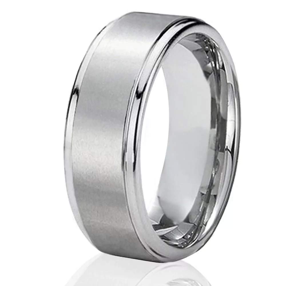 Silver Titanium Mens Brushed Matte Engagement Wedding 8mm Band Promise Ring