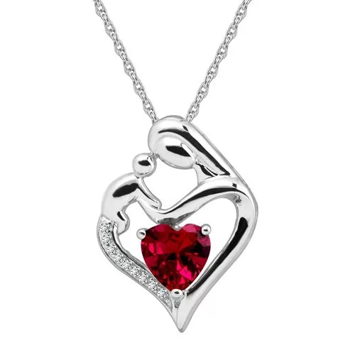 Mother’s love is the purest and most beautiful love in the world. The Meravi mother’s heart necklace is a symbol of the love between mother and child. It can also represent your devotion to your family. This necklace has a sterling silver heart shaped pendant that is both meaningful and symbolic. The pendant features a ruby red CZ stone in the center of the heart, which gives off a warm radiance that will stand out wherever you go. Made from solid 925 sterling silver and plated in tarnish resistant rhodium.