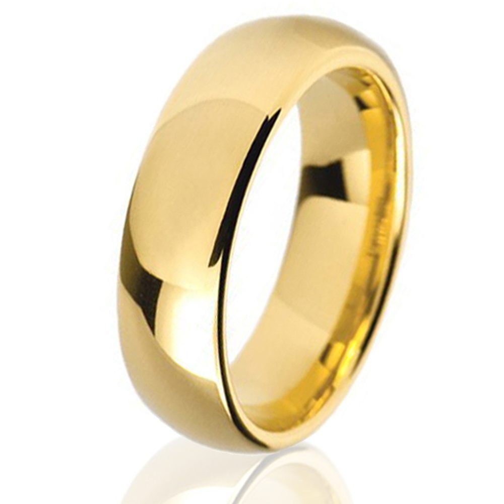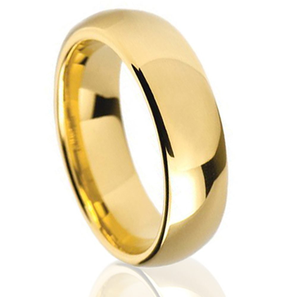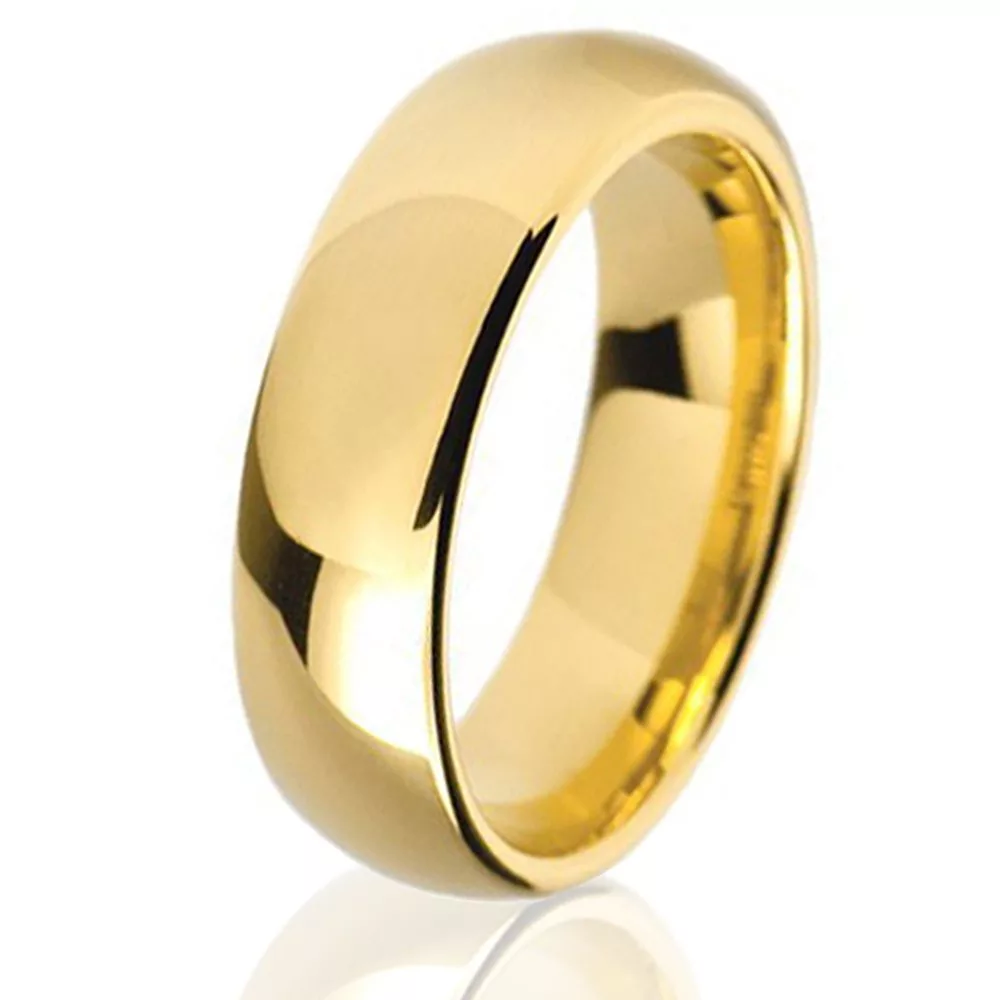 This titanium wedding band is the perfect choice for those who want a classic and elegant look. Its simple design is refined with an 18k gold plating, which gives it a lustrous shine that will impress everyone. It features a polished finish and comfort fit, so it is very comfortable to wear and will not pinch your finger. Simple, clean and elegant, this polished dome wedding band is the perfect addition to any outfit. An attractive and versatile ring that can be worn by both men and women.